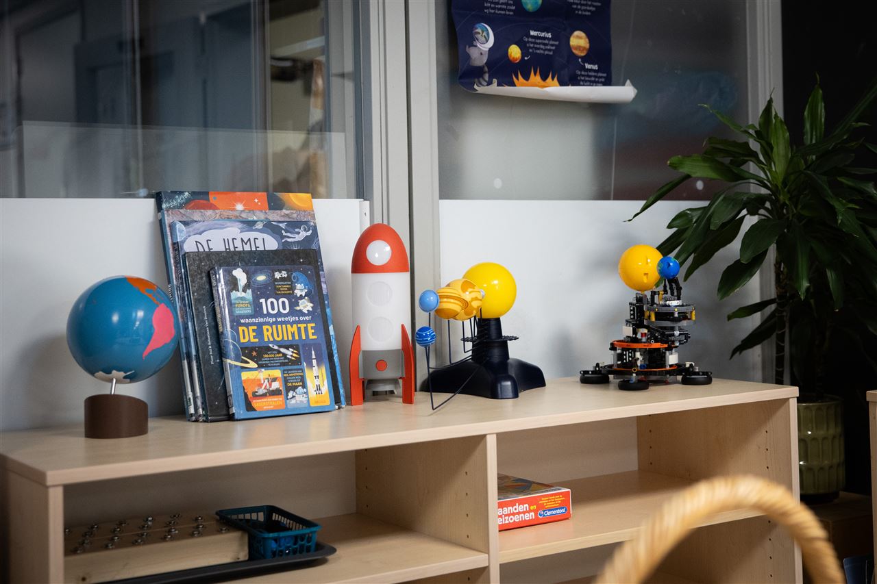 De ruimte waarin een kind opgroeit is van grote invloed op zijn ontwikkeling. De ruimte richten wij dusdanig in dat het past bij de levensfase en de mogelijkheden van het kind. De ruimte bereidt het kind voor en stimuleert het kind om tot ‘leren’ te komen. De indrukken die een kind opdoet, prikkelen tot ontwikkeling. Het is belangrijk dat deze prikkels een positief karakter hebben en tegemoetkomen aan de basisbehoeften van een kind. Een kind heeft behoefte aan veiligheid, liefde en structuur, maar ook aan interessante bezigheden waarmee het de wereld kan ontdekken. Maria Montessori spreekt hier van de voorbereide omgeving. Het is de omgeving die het kind uitnodigt actief aan het werk te gaan. Een voorwaarde om optimaal te kunnen leren is een goede sfeer, rust, acceptatie, vertrouwen en wederzijds respect.